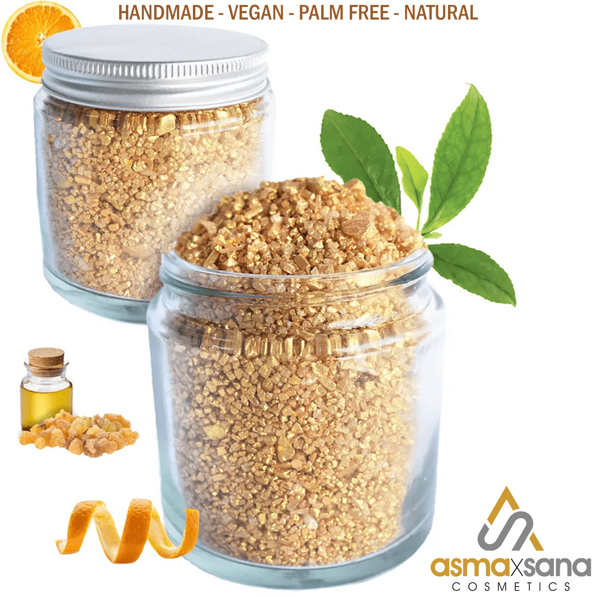 Sodium Chloride (Sea Salt), Sodium Chloride (Dead Sea Salt), Sodium Chloride (Himalayan Pink Salt), Magnesium Sulphate (Epsom Salt), Kaolin (White Kaolin Clay), Citrus Sinensis (Sweet Orange) Oil, Boswellia Serrata (Frankincense) Oil, Eugenia Caryophyllus (Clove) Bud Oil, Limonene, Linalool, Citral, Citronellol, Eugenol, CI77019, CI77491, CI77891